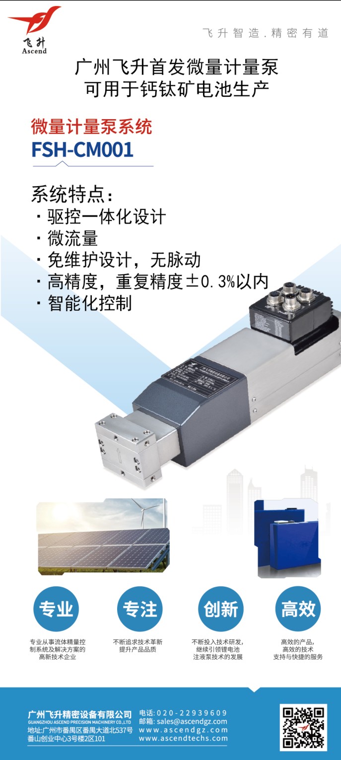 广州飞升首发微量计量泵可用于钙钛矿电池生产