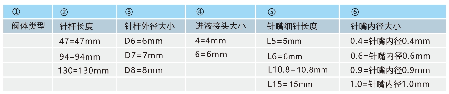 说明:注液针内径0.4mm,进液接头6mm,注液针杆外径7mm,针杆长度94mm的注液阀。